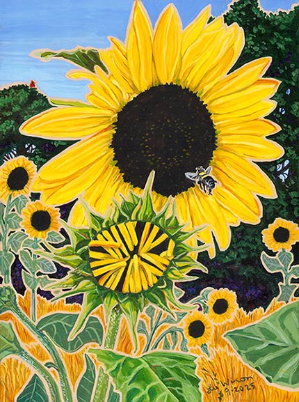 Sunflowers with BeeSeptember 2025Sold